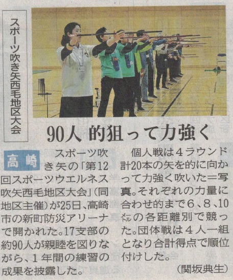 高崎市の新町防災アリーナで、第12回西毛地区スポーツウエルネス吹矢大会が開催されました。
